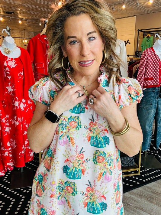 UNCLE FRANK FLORAL LINEN DRESS