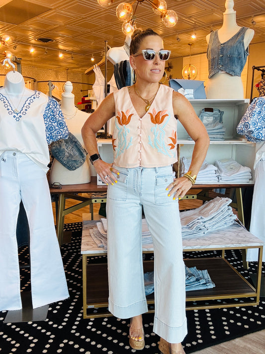 HIGH RISE PINSTRIP CROP WIDE LEG JEANS