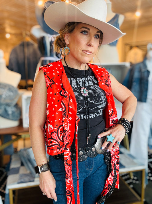 PAISLEY PRINTED TIE FRONT VEST