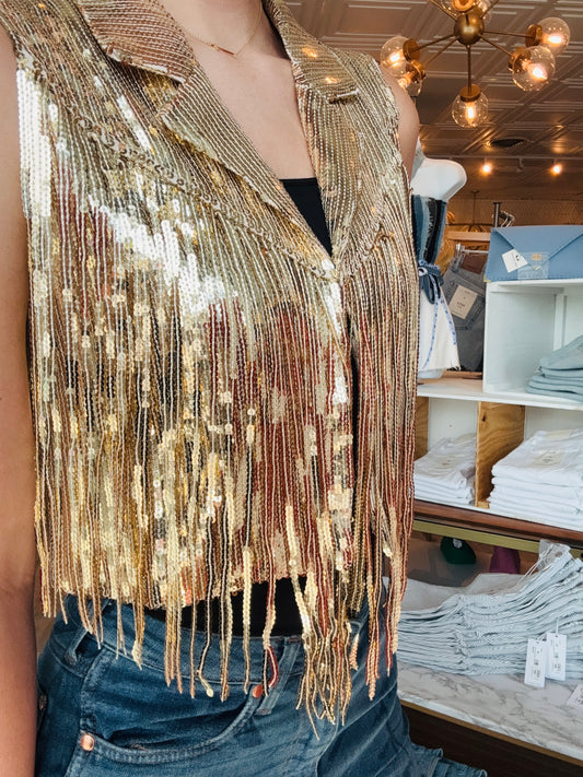 FRINGE SEQUIN COLLARED VEST