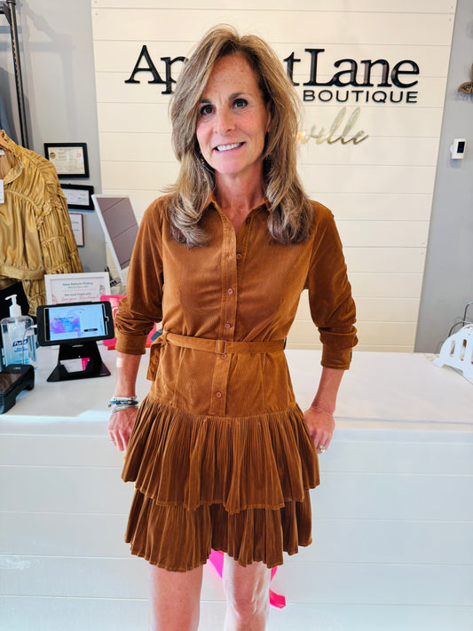 COLLARED COURDROY PLEATED SKIRT DRESS